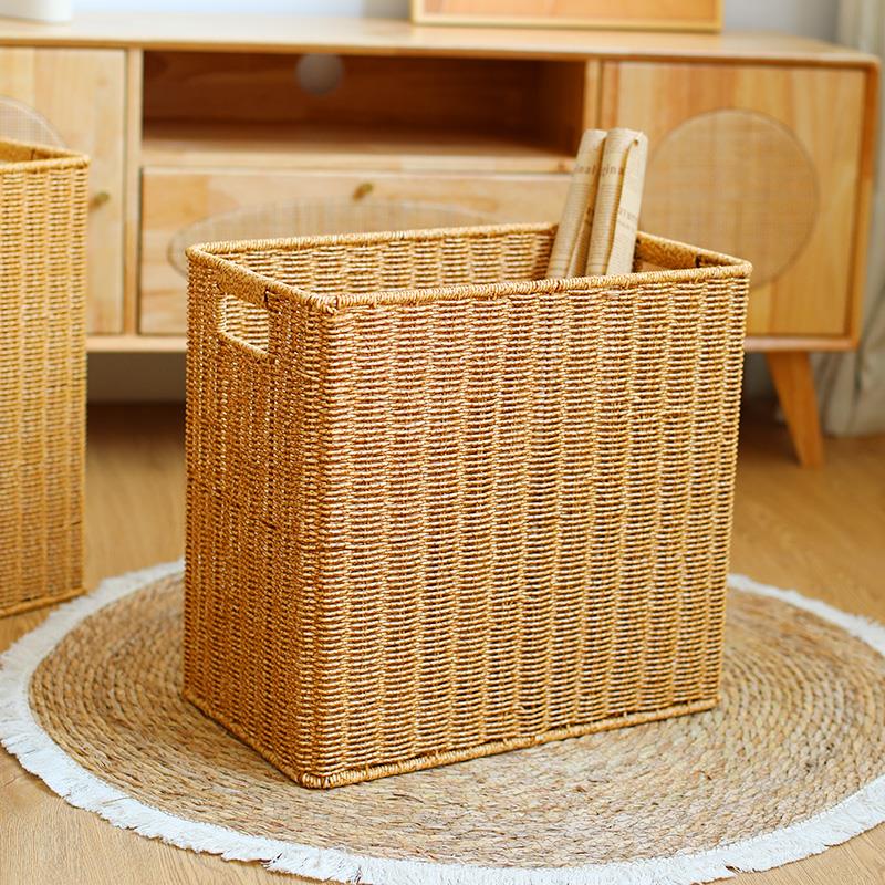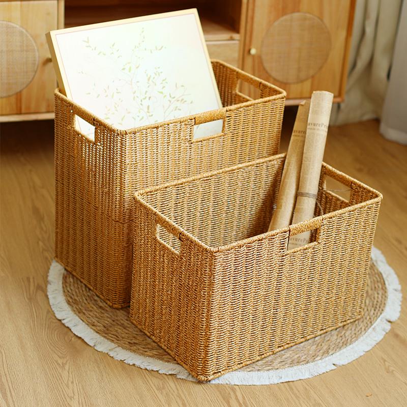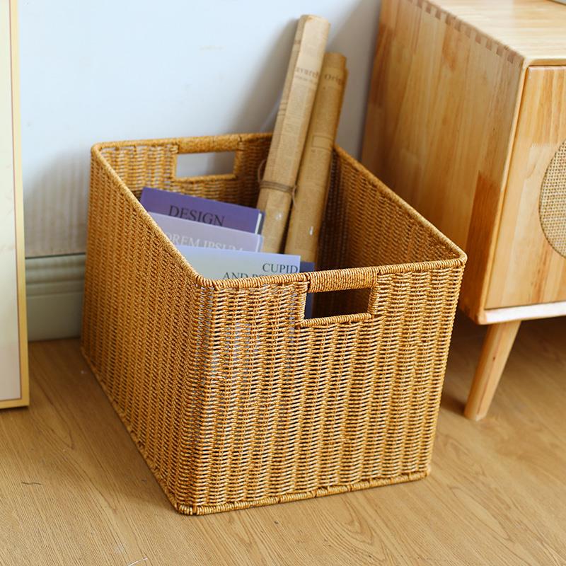 浦澜大号仿藤编书架收纳筐定制格子柜置物篮编织客厅橱柜杂物盒