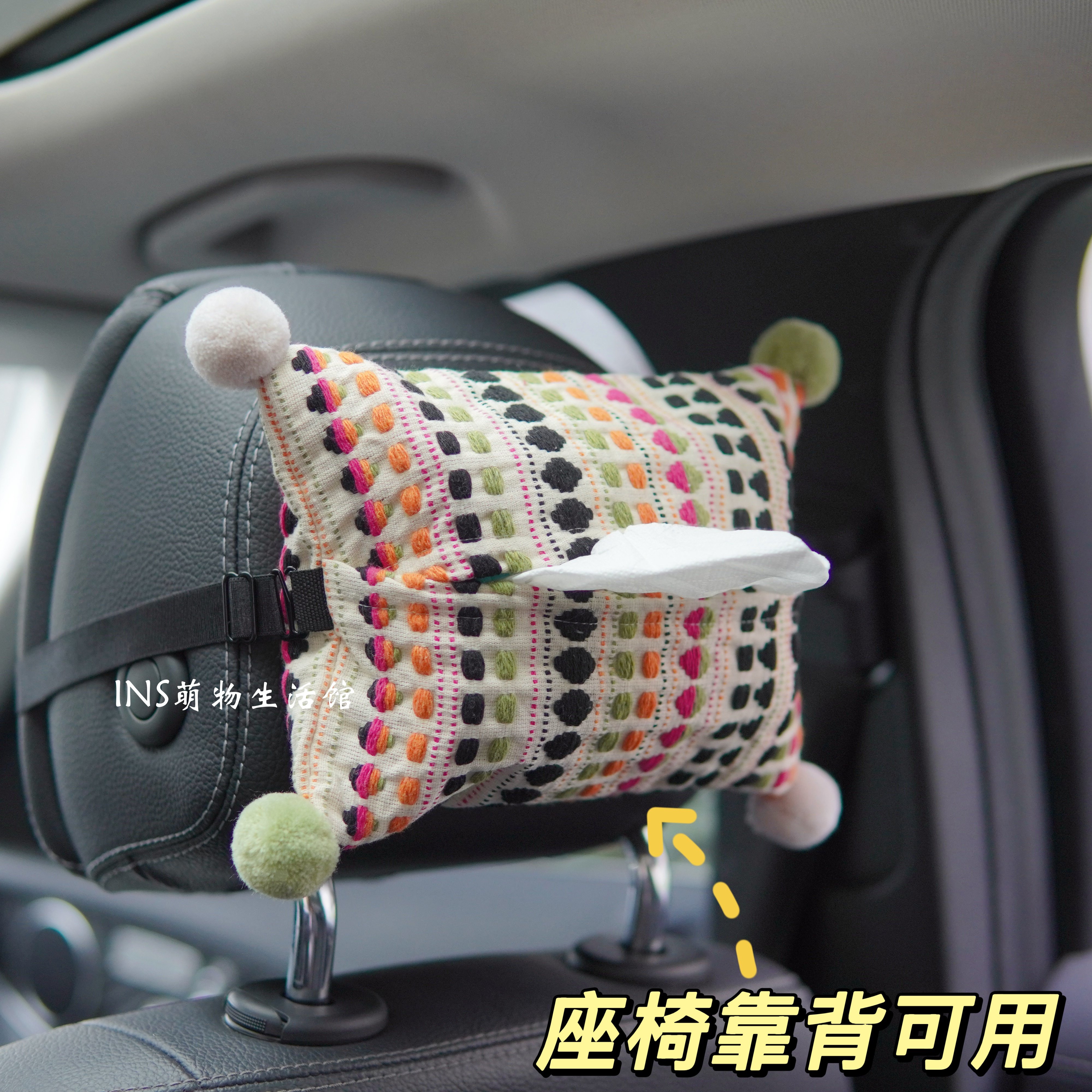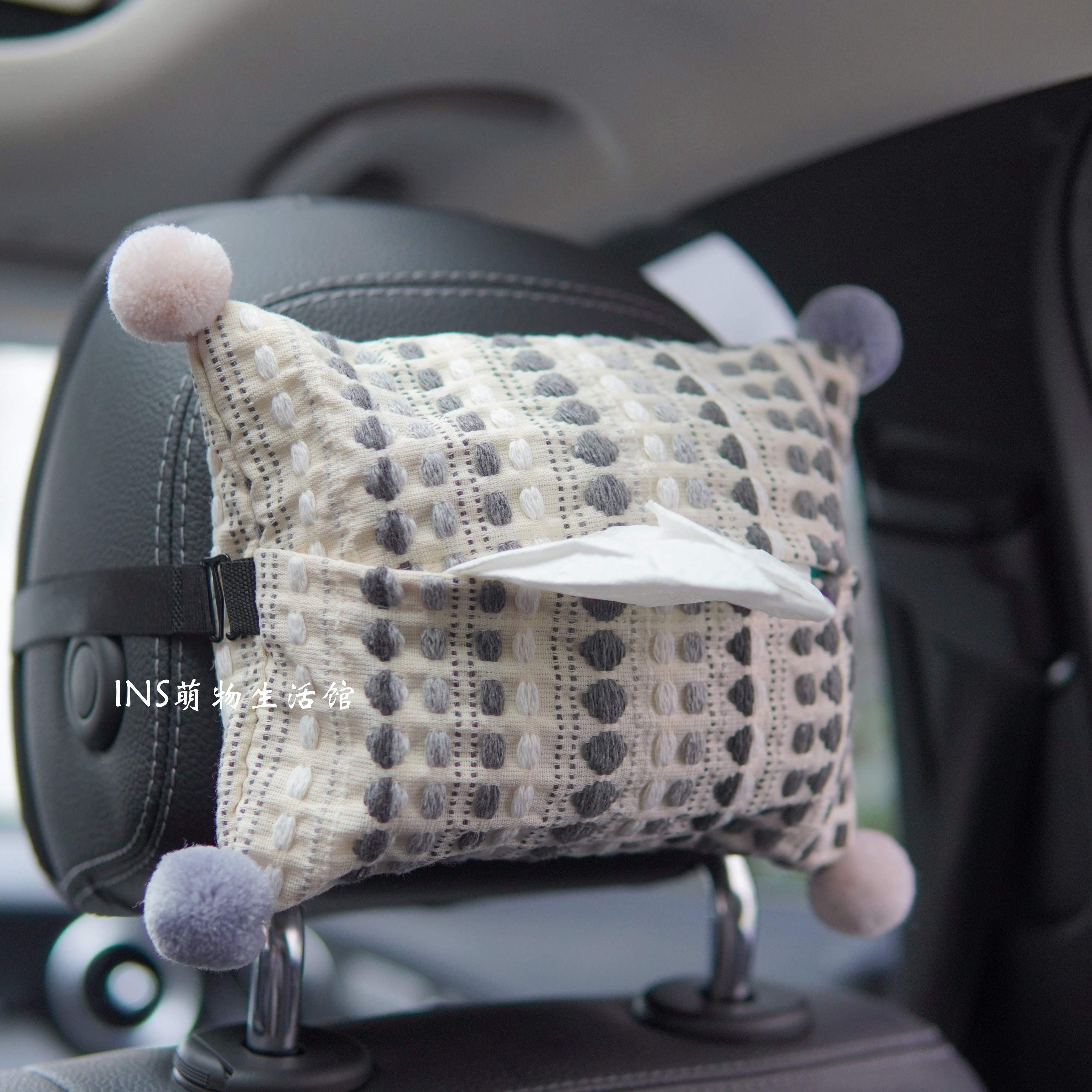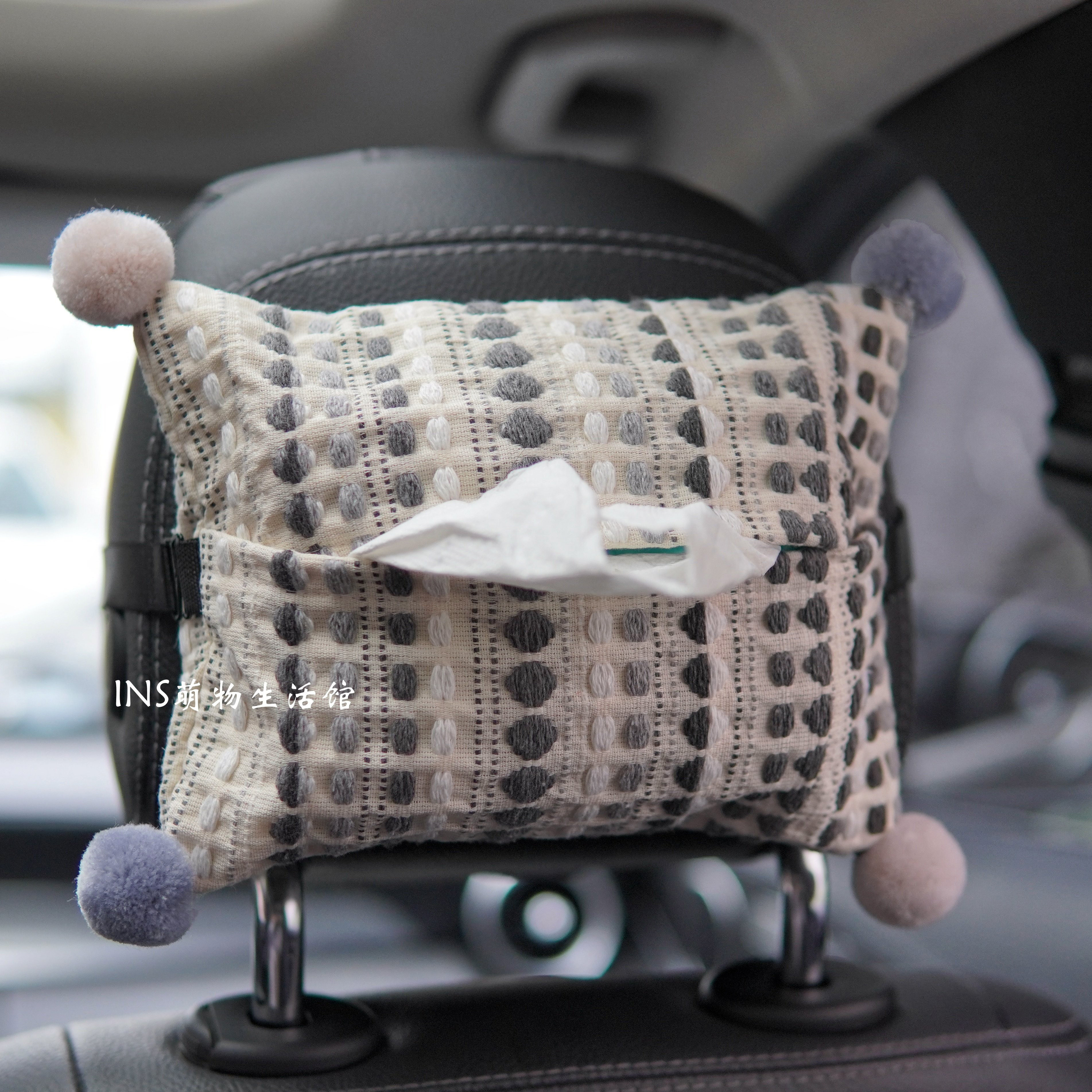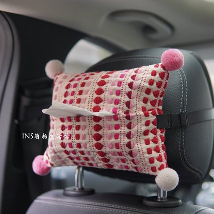车载纸巾盒汽车挂式抽纸盒车内挂袋创意可爱毛球高颜值装饰抽纸袋
