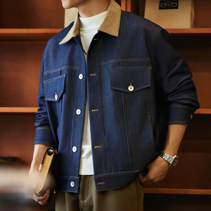 巴恩风撞色翻领牛仔夹克