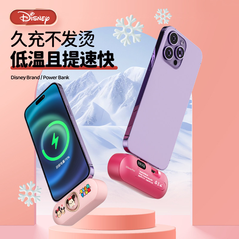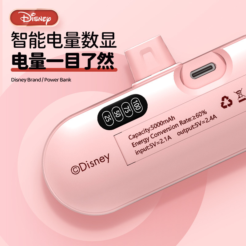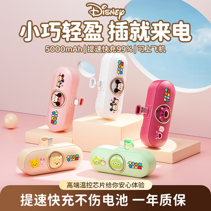 迪士尼 胶囊充电宝可爱快充迷你超薄小巧便携适用于苹果华为小米