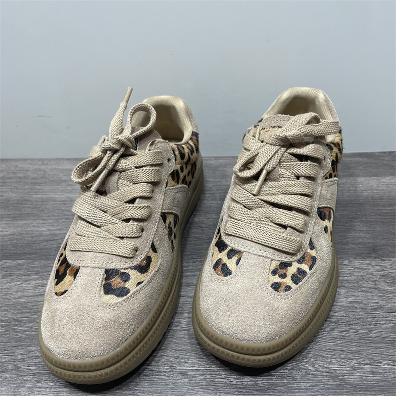 断码处理真皮豹纹德训鞋女软底阿甘鞋平底板鞋女学院风休闲运动鞋