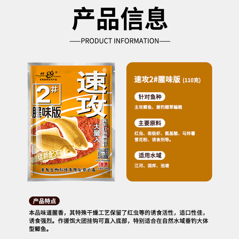 正品老鬼鱼饵速攻2#腥味版速攻2号野钓鲫鱼饵料拉饵大比重饵料