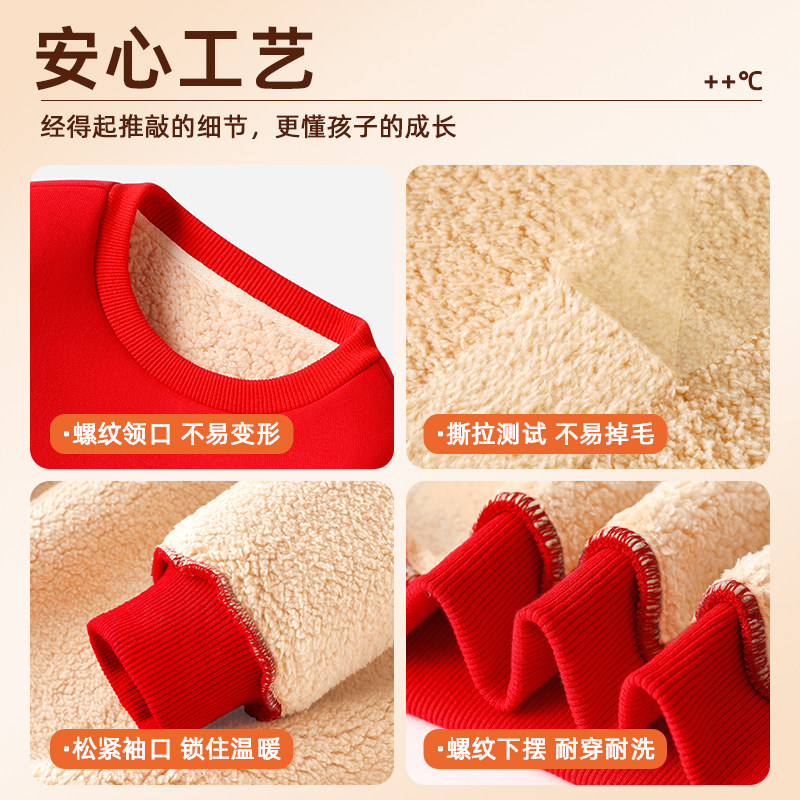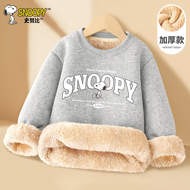 史努比男童羊羔绒加绒卫衣冬季2025新款加厚上衣中大童保暖一体绒