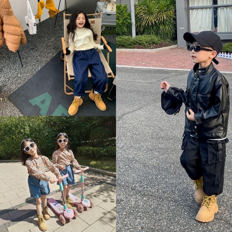 儿童牛皮小黄靴2025春秋季新款中大童男童鞋韩版女童网红马丁靴潮