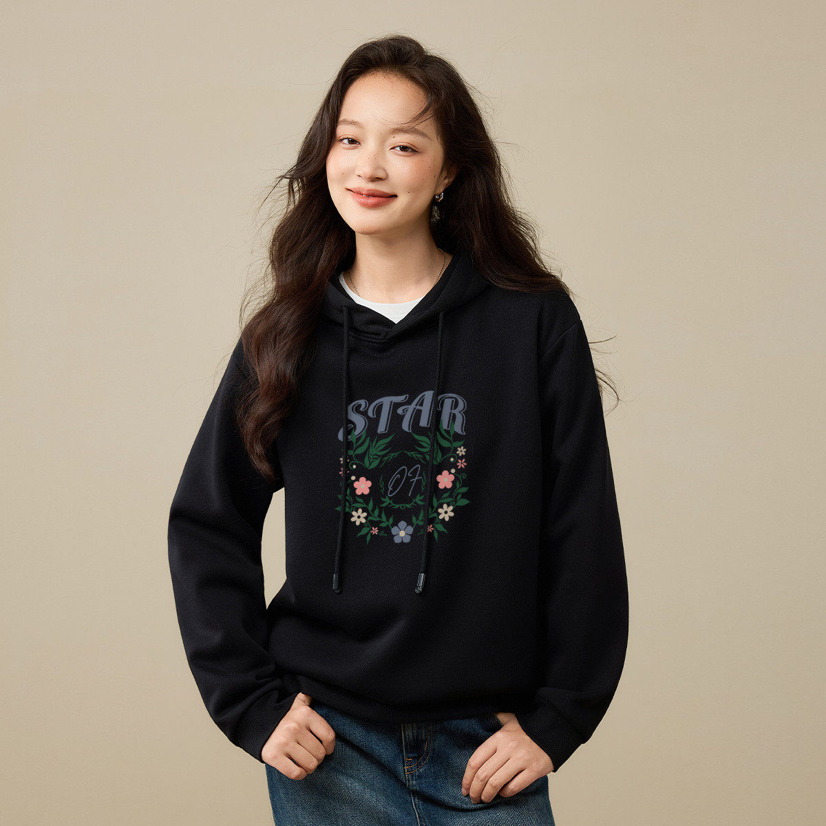 茵曼2025冬季新款加绒加厚保暖长袖卫衣外套女连帽宽松显瘦百搭