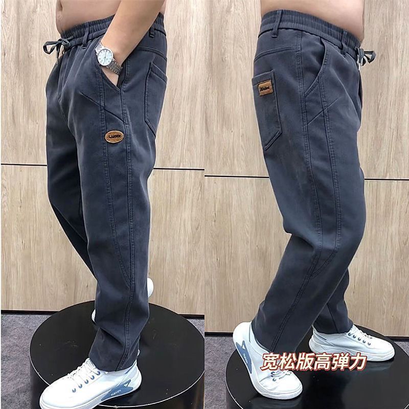 秋冬新款时尚老爹男士牛仔裤高腰潮流百搭弹力哈伦裤休闲直筒长裤