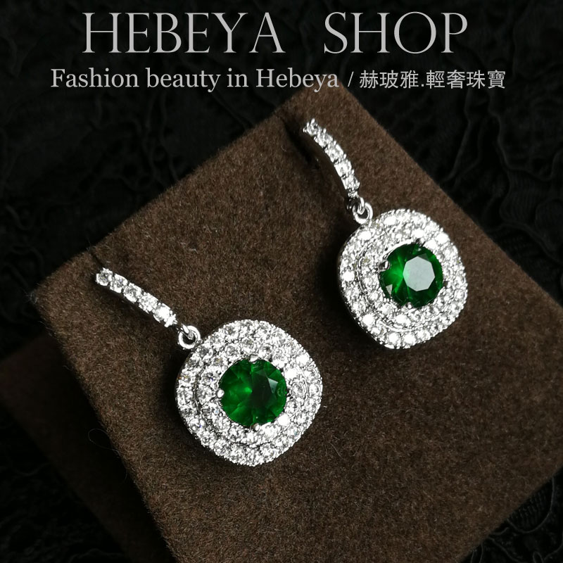 欧美优雅复古祖母绿色宝石耳钉 奢华长款显瘦耳环耳坠 无耳洞耳夹