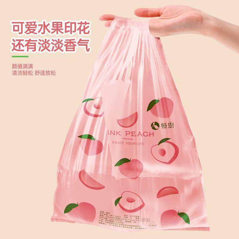 垃圾袋手提式特厚印花水蜜桃香味袋子加厚垃圾背心式塑料袋厨房