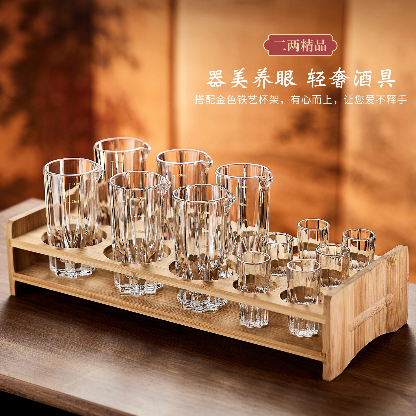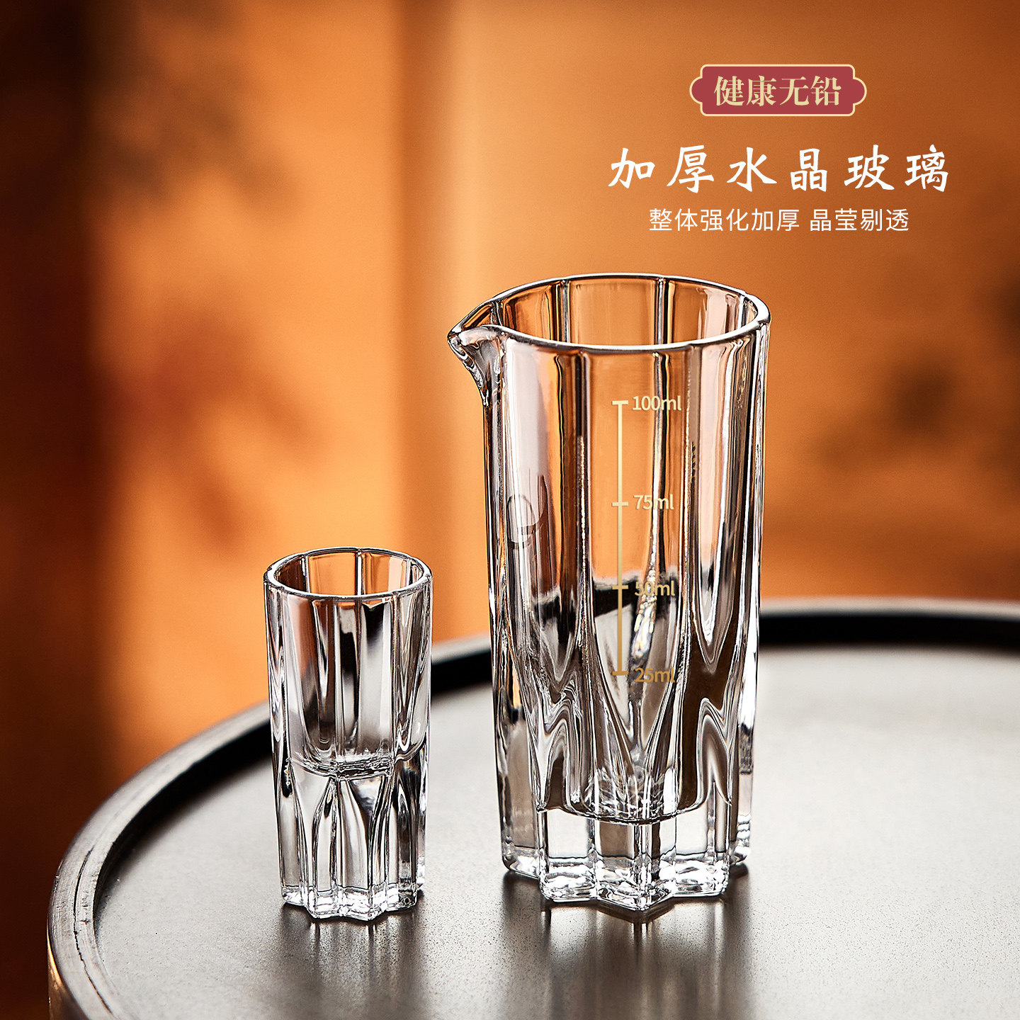 轻奢高档水晶玻璃白酒杯家用一口杯烈酒子弹杯酒盅分酒器酒具套装