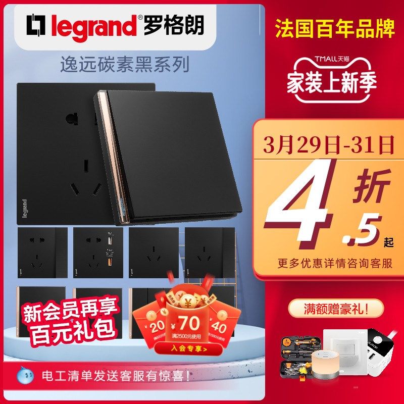 罗格朗开关插座面板多孔家用暗装五插开1空调usb逸远碳素黑