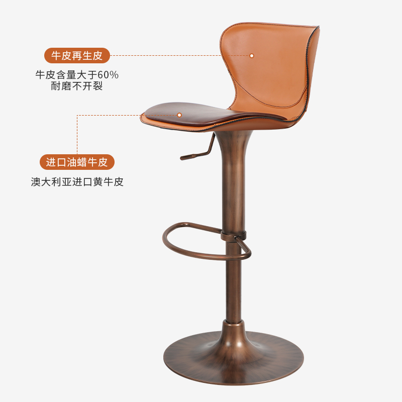 【进口澳洲油蜡牛皮】吧台椅子真皮靠背高脚凳酒吧椅前台椅