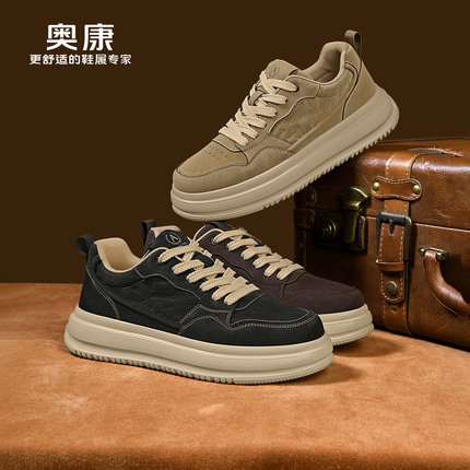 奥康 男鞋旗舰工装板鞋男休闲大码45通勤复古轻便软底百搭厚底鞋W