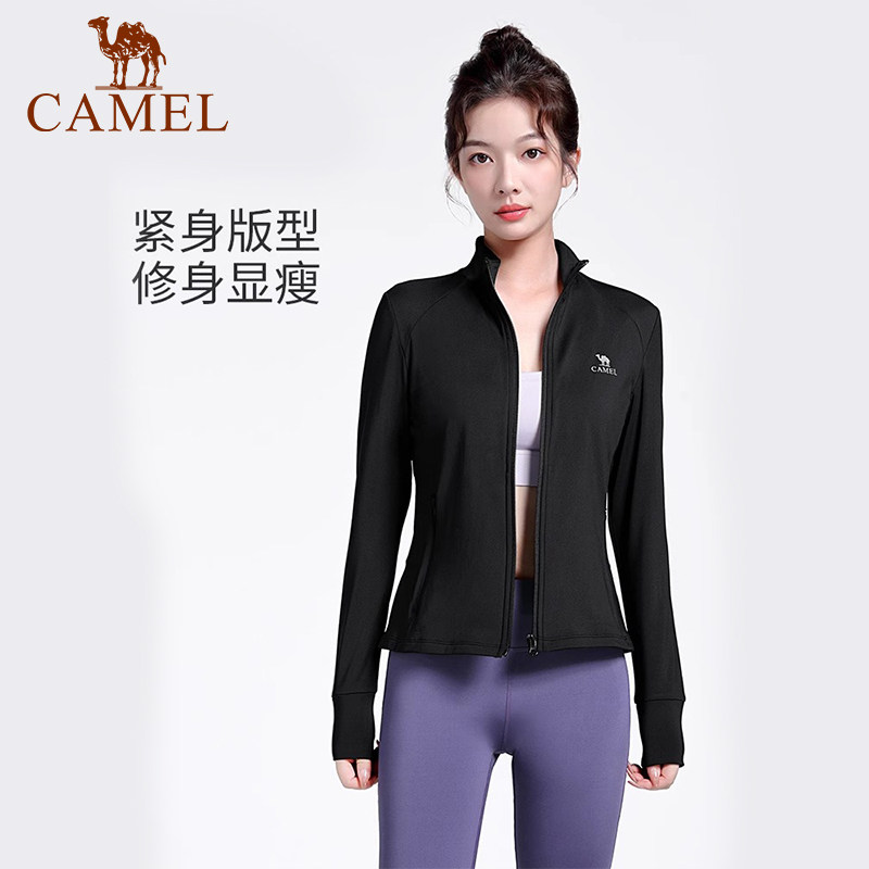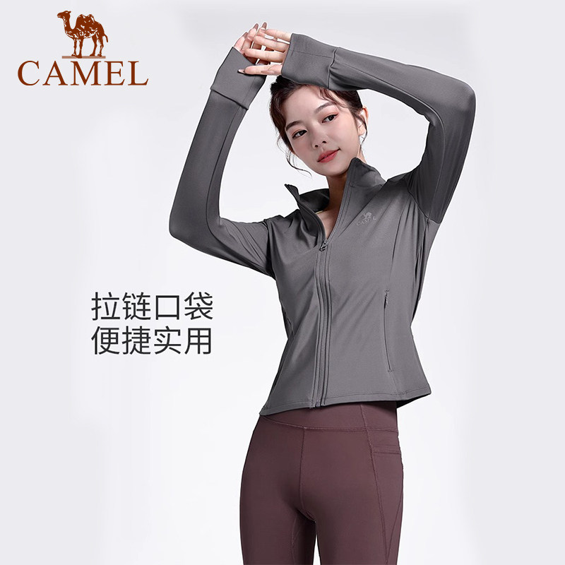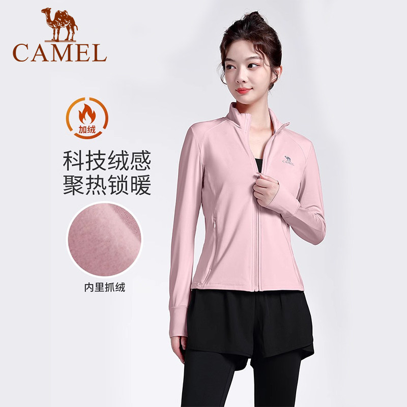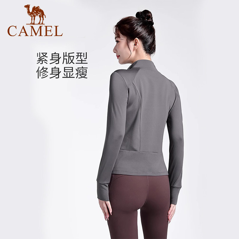 骆驼瑜伽服女春季薄绒外套修身健身服长袖跑步服开衫运动服上衣服
