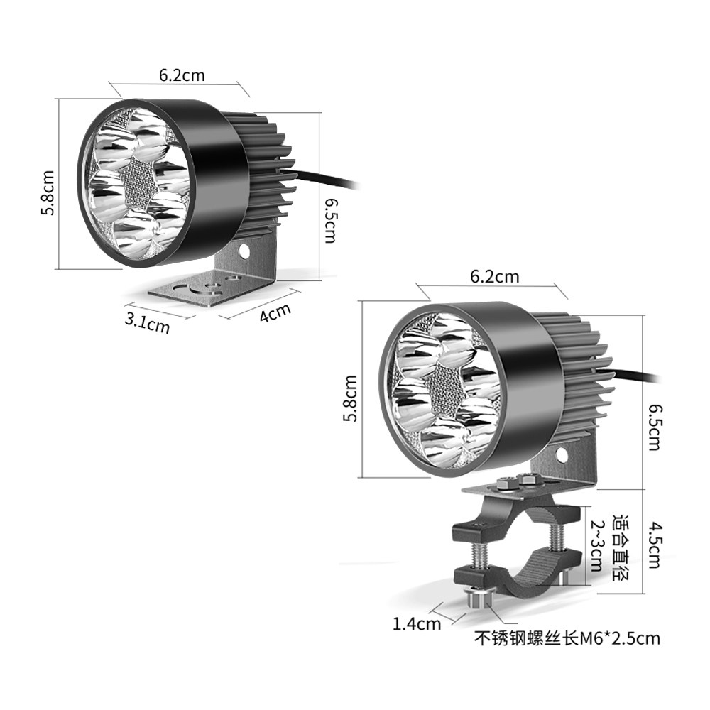 摩托车大灯电动车灯泡改装倒车LED射灯USB口超亮强光外置辅助大灯