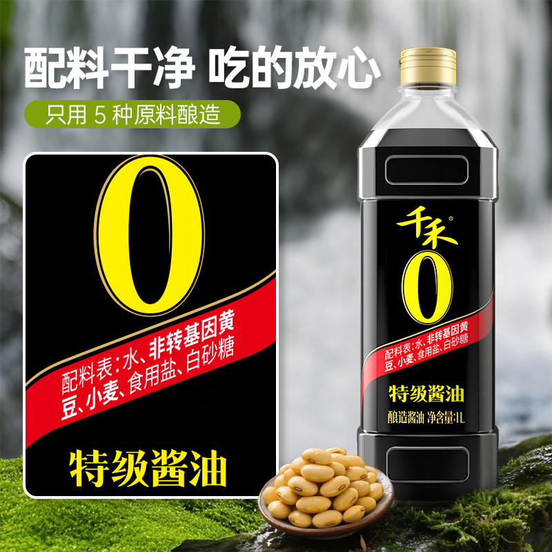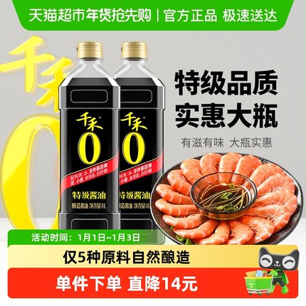 千禾0添加特级酱油1L*2酿造生抽家用炒菜红烧凉拌调味品未加碘