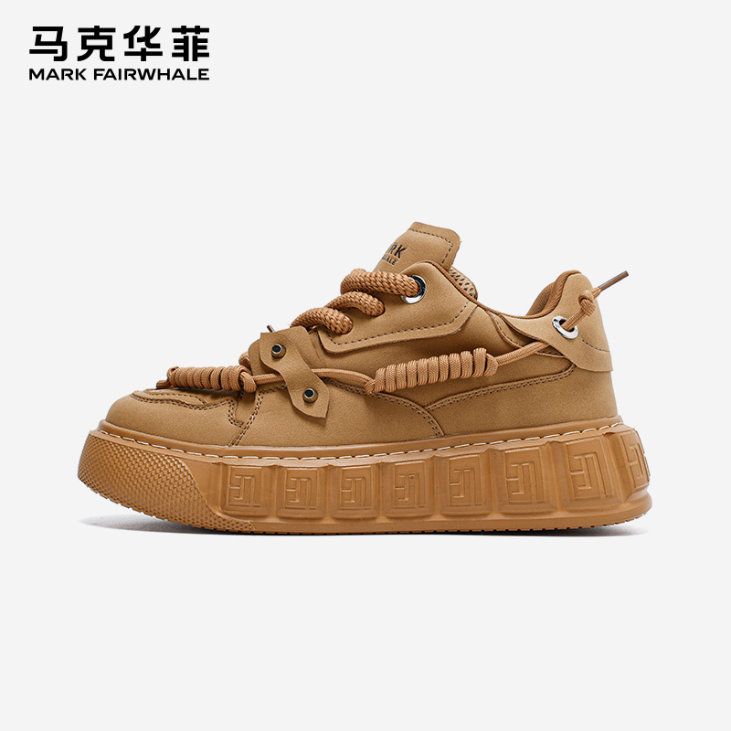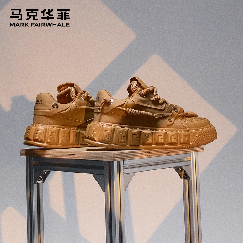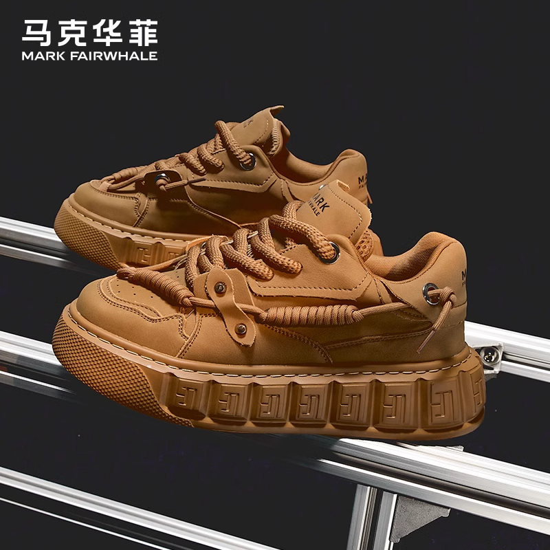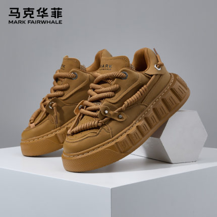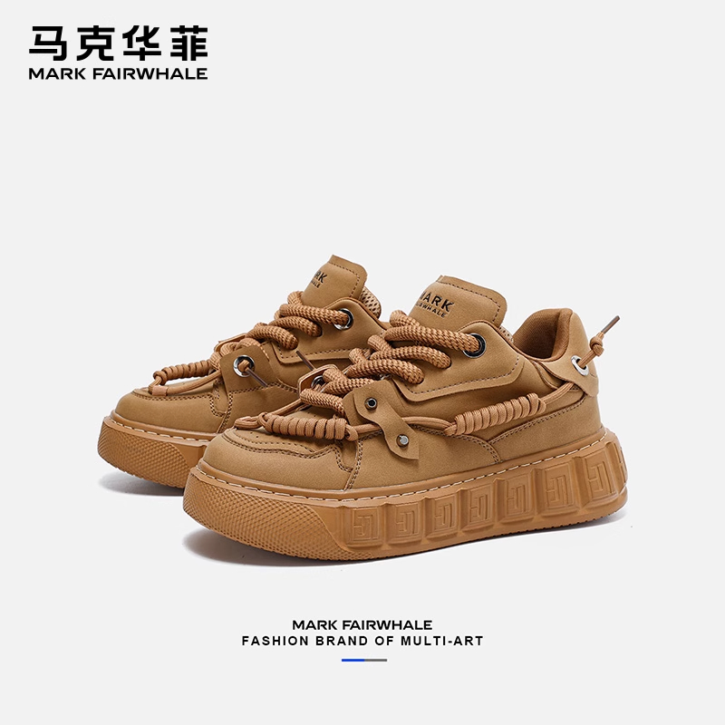 马克华菲小麦色国潮设计面包鞋子男潮鞋2025秋季新款增高男鞋板鞋