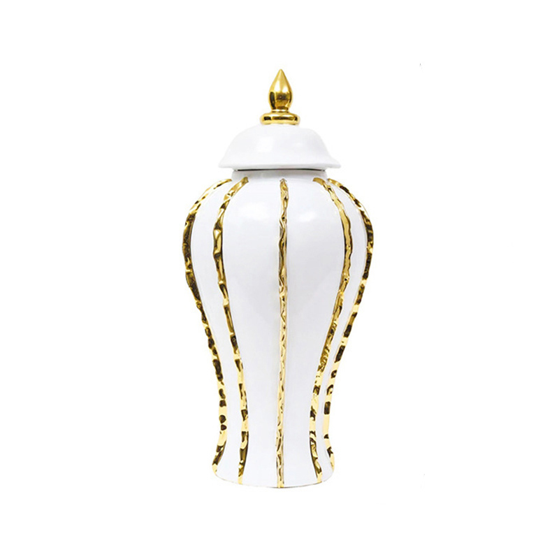 欧式轻奢高级感摆件电镀白金条纹将军罐大花瓶样板房客厅玄关花器