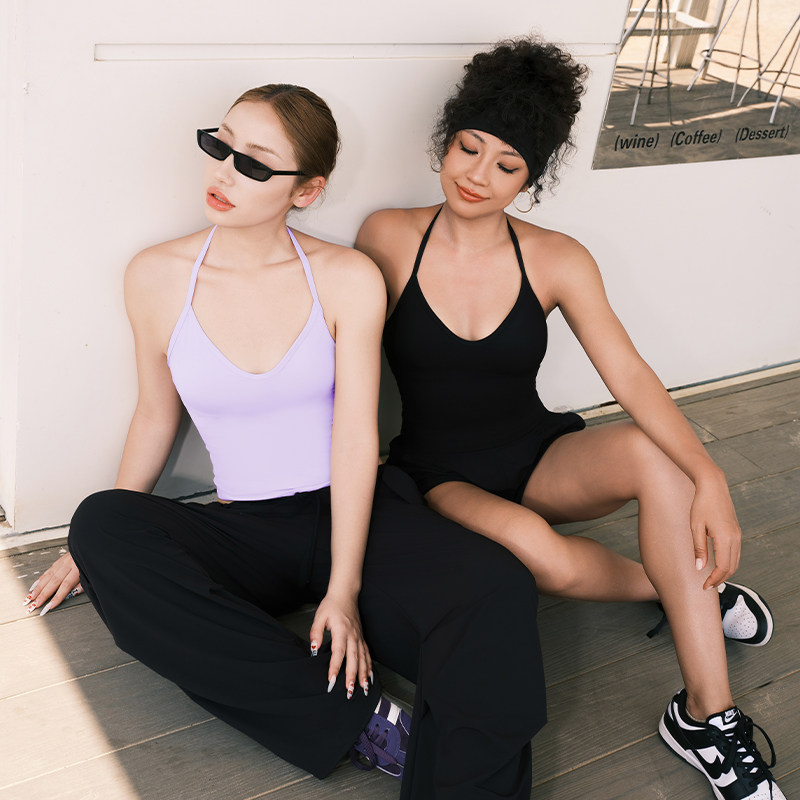 Aria Leisure 挂脖运动背心女夏美背外穿瑜伽上衣吊带背心带胸垫
