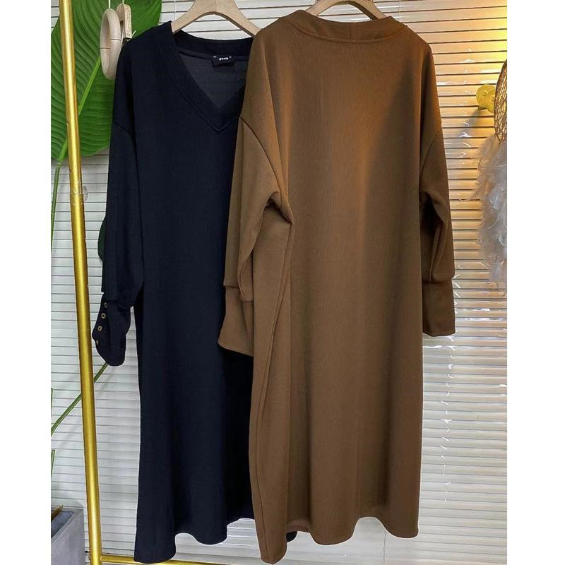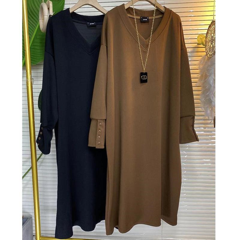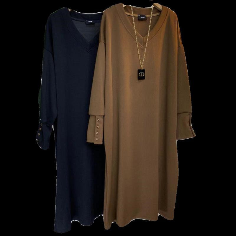 胖MM300斤特大码时尚V领宽松遮肉纯色长款韩版女装打底连衣裙秋冬