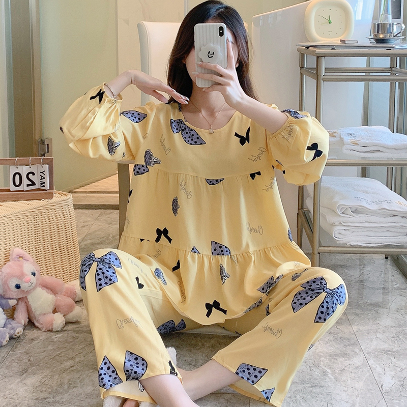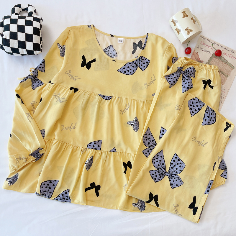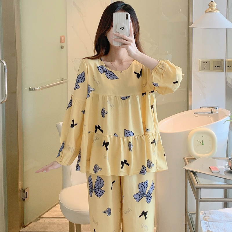 春秋款学生棉绸睡衣女款夏季超薄款夏天女士空调房绵绸人造棉套装