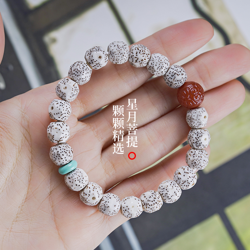 海南原生态无相星月菩提手串单圈手高油高密大留白文玩男女佛珠链