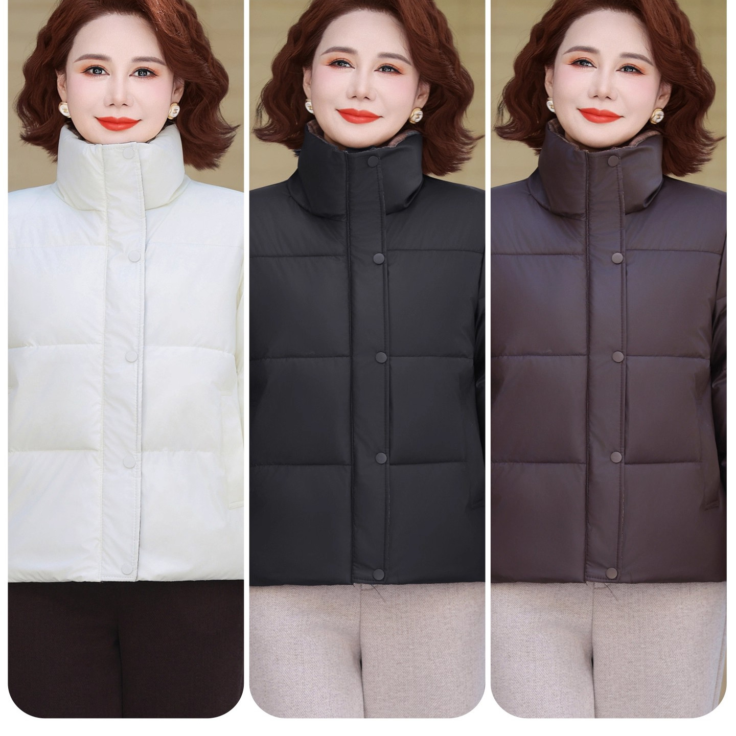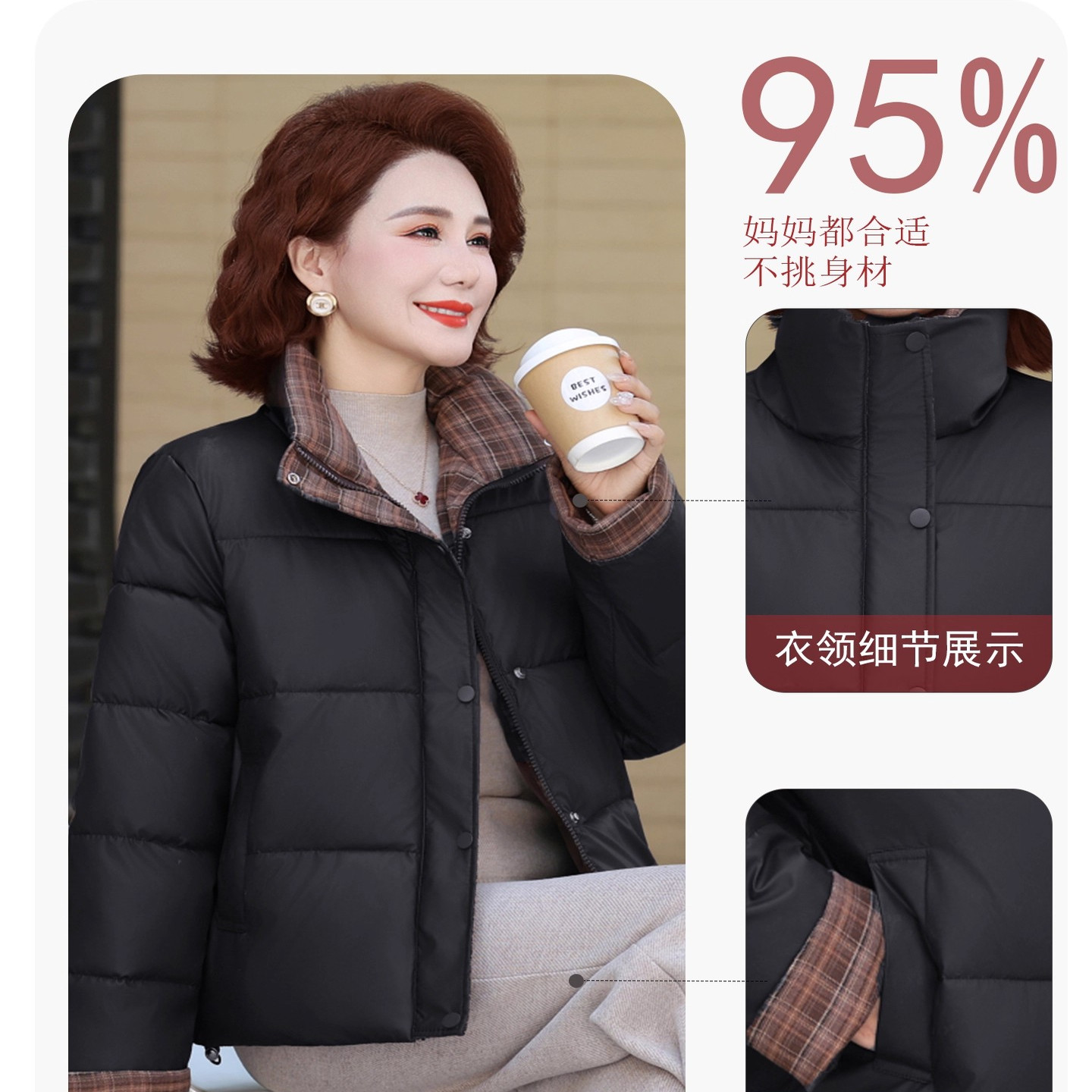 小个子妈妈冬季小棉袄外套短款大码中老年人女冬装羽绒棉服气质感
