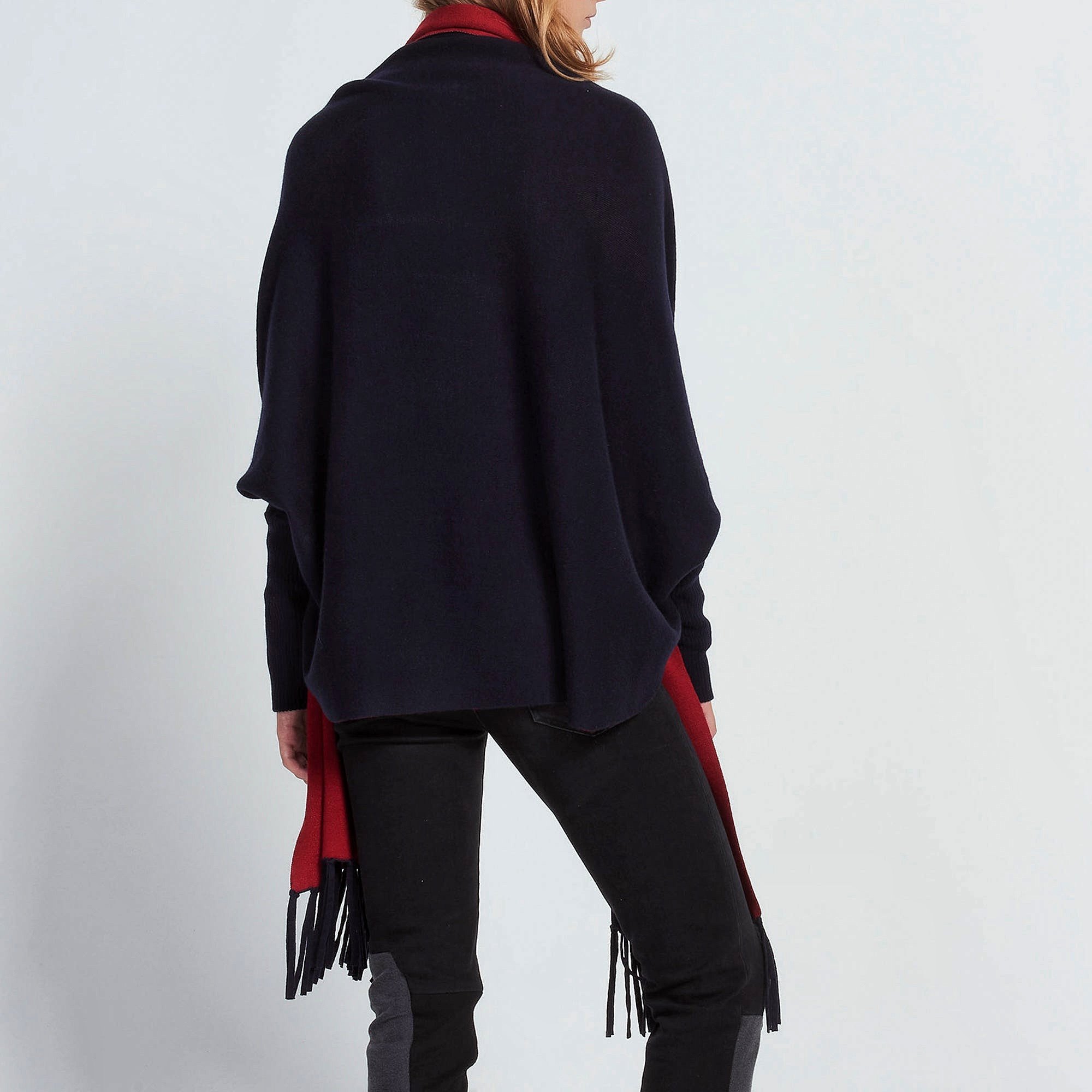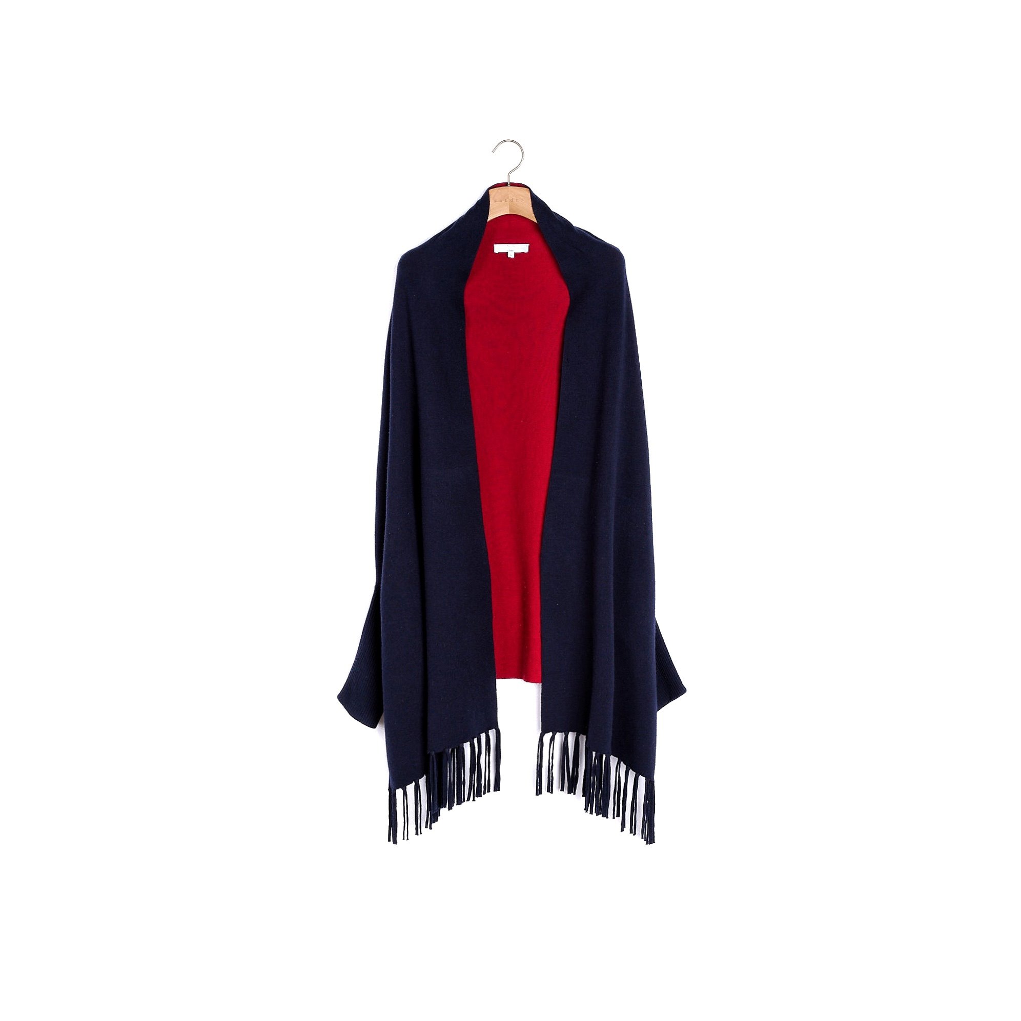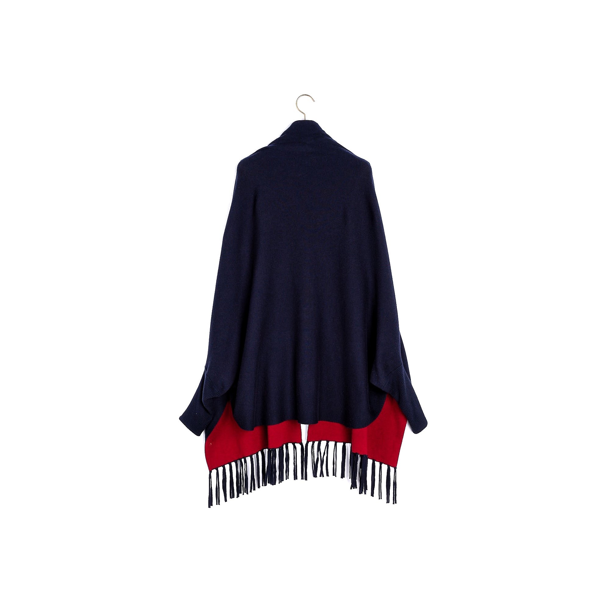 巴黎典雅SD 女款 羊毛混纺双面流苏披肩针织开衫毛衣外套