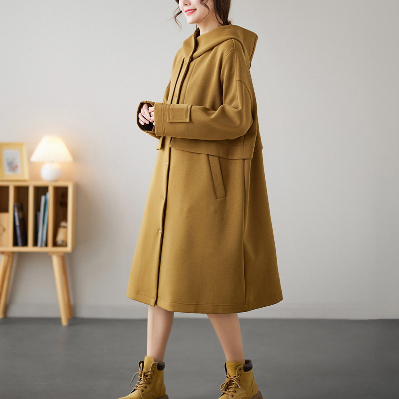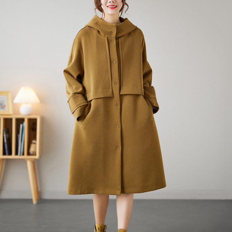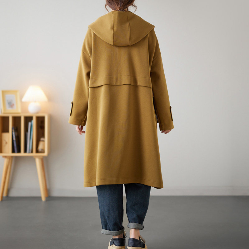 连帽中长款文艺宽松显瘦风衣外套