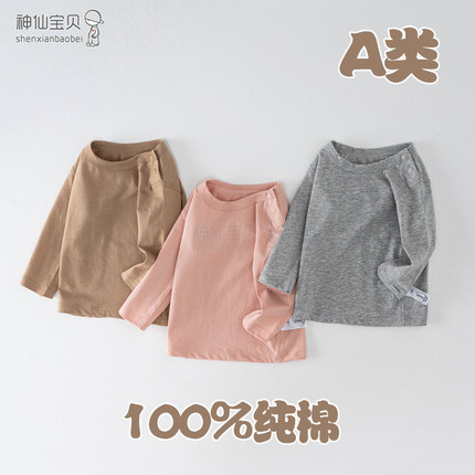 纯棉宝宝长袖打底衫上衣无骨婴儿T恤新生儿春秋衣服a类四季全棉