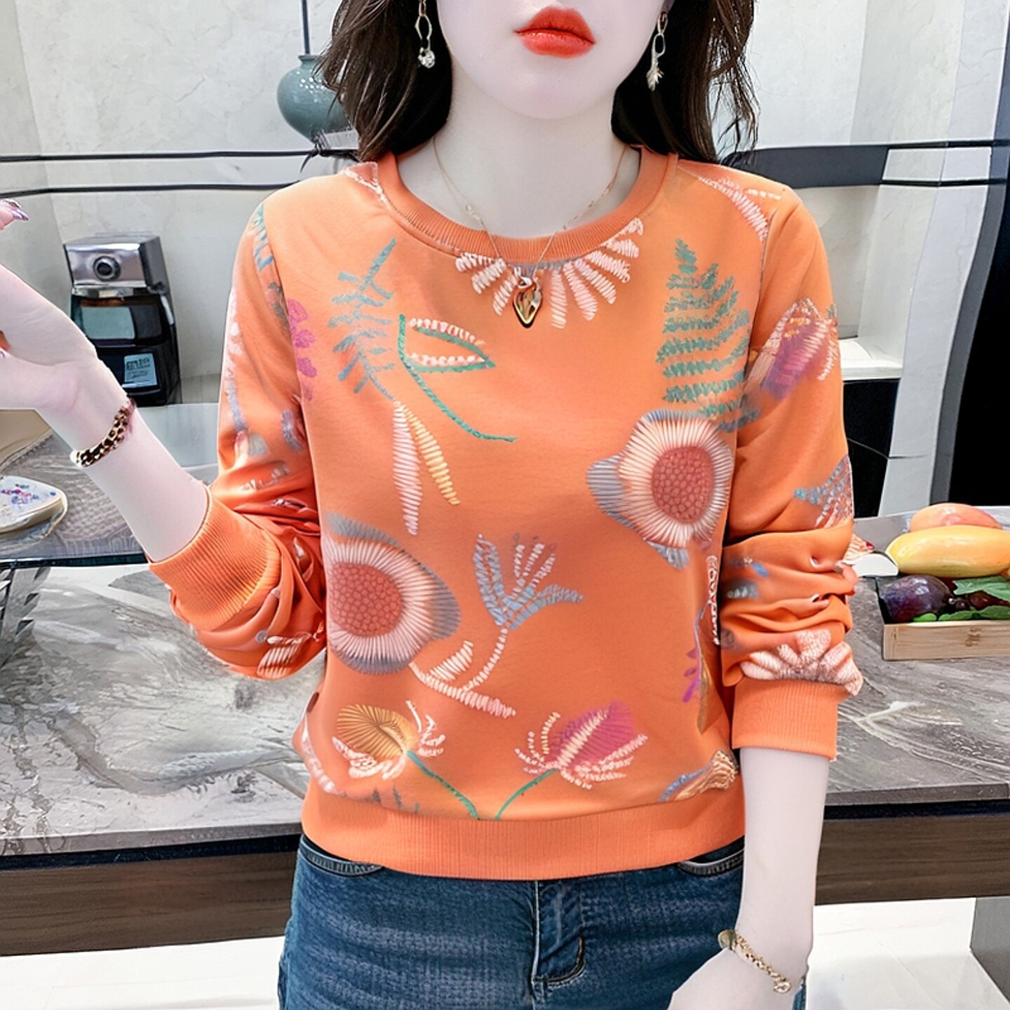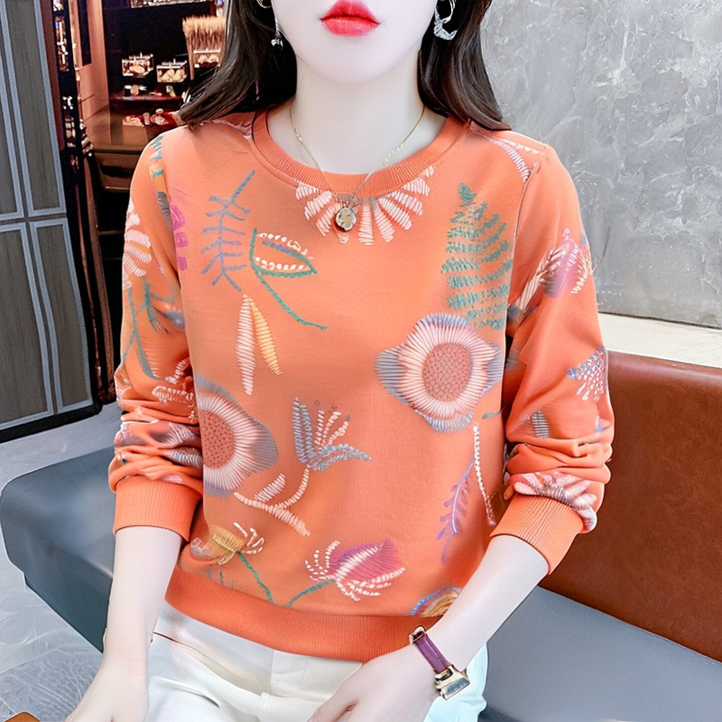 春装流行爆款圆领卫衣女2026新款洋气印花长袖上衣宽松无帽T恤ins