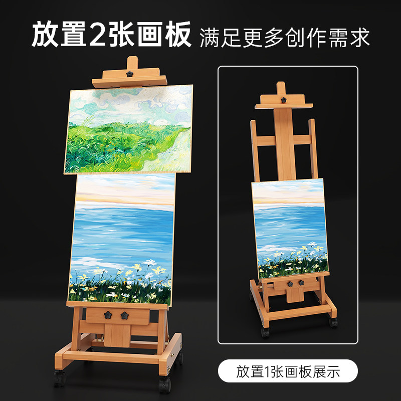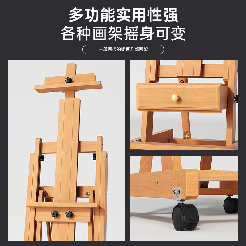 榉木画架平立两用画板套装木制美术生专用可升降带平放复古式落地木质画架画板多功能油丙烯水彩国画室内画架