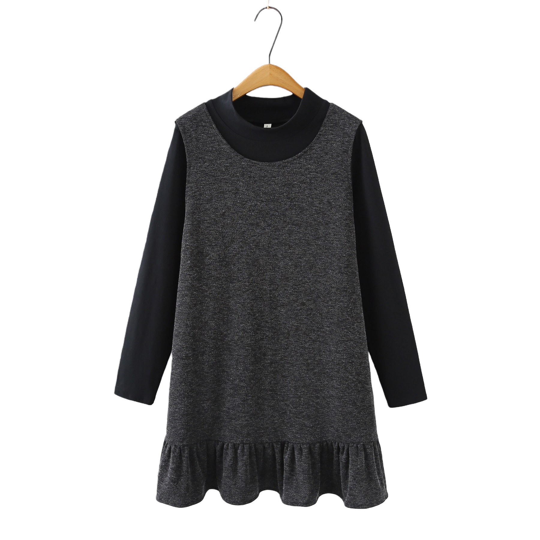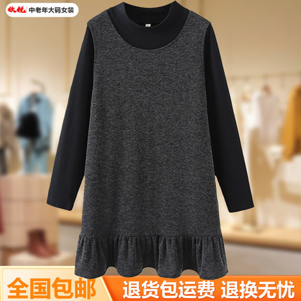 2025秋冬季新款中老年女装长袖拼接荷叶边连衣裙时尚减龄两件套