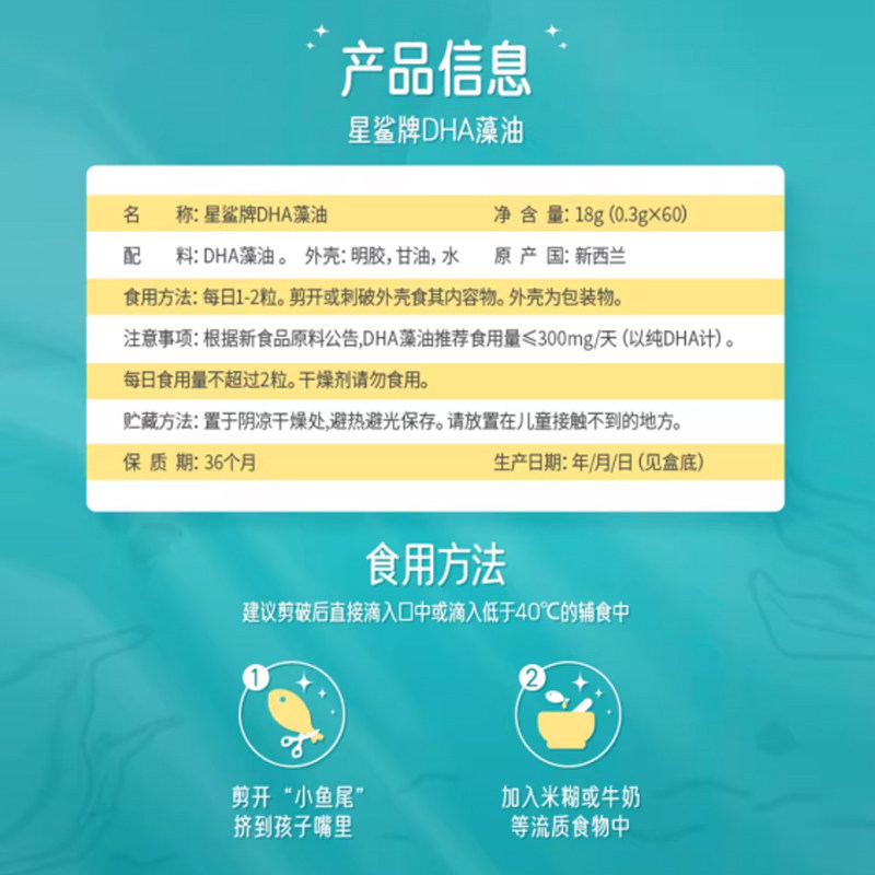 星鲨DHA藻油婴幼儿童新生儿宝宝孕妇新西兰进口海藻官方旗舰正品