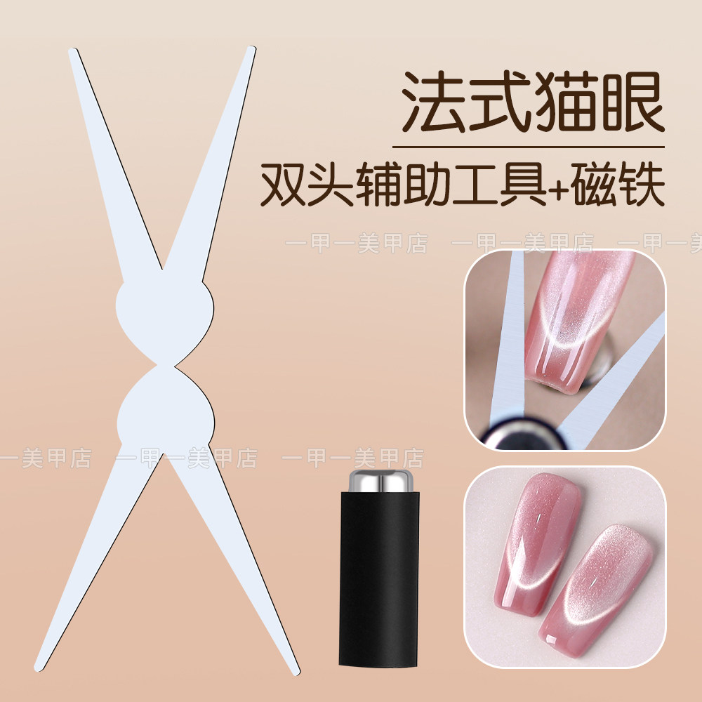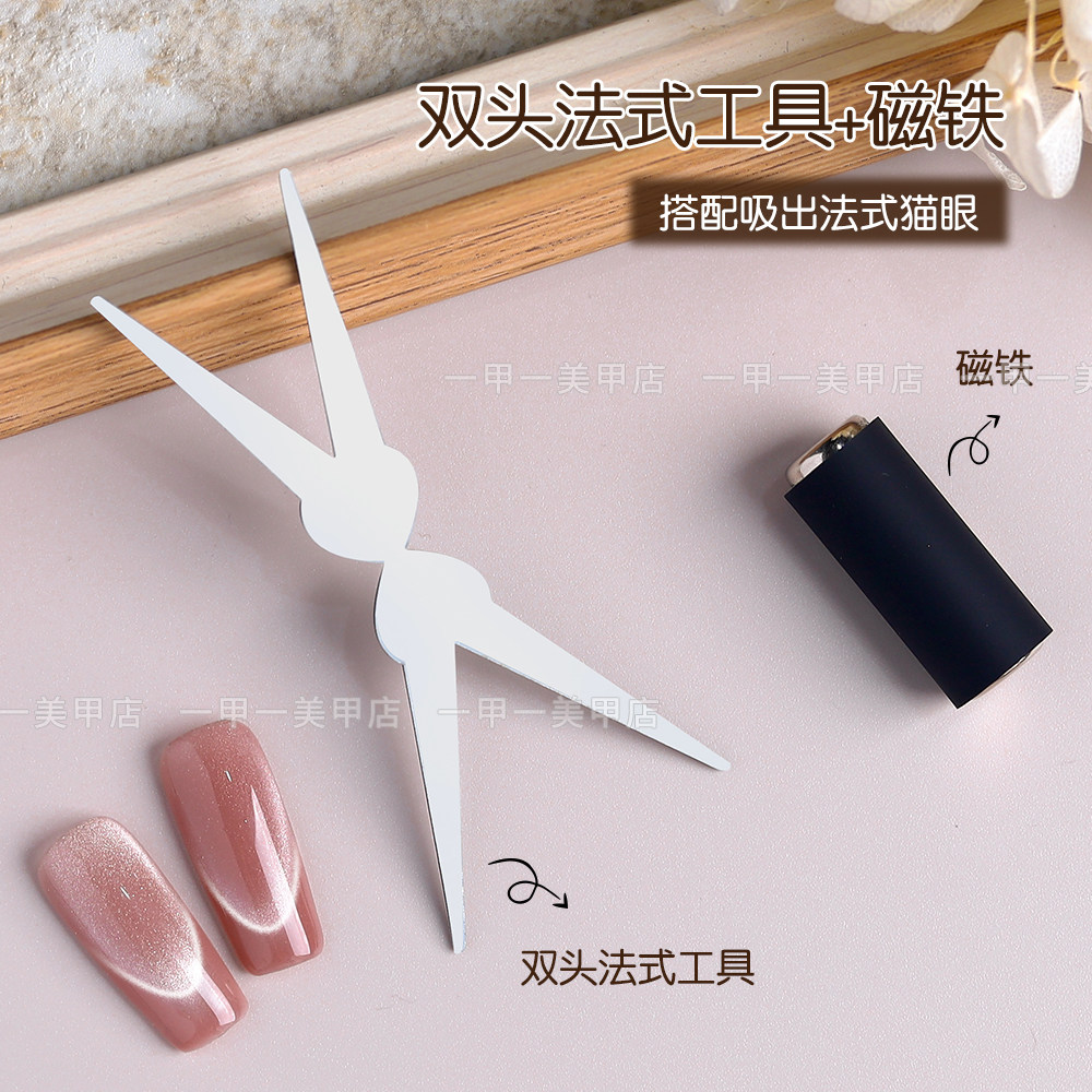 新款双头法式铁片磁铁猫眼辅助工具强力圆柱磁铁剪刀式吸铁石加厚