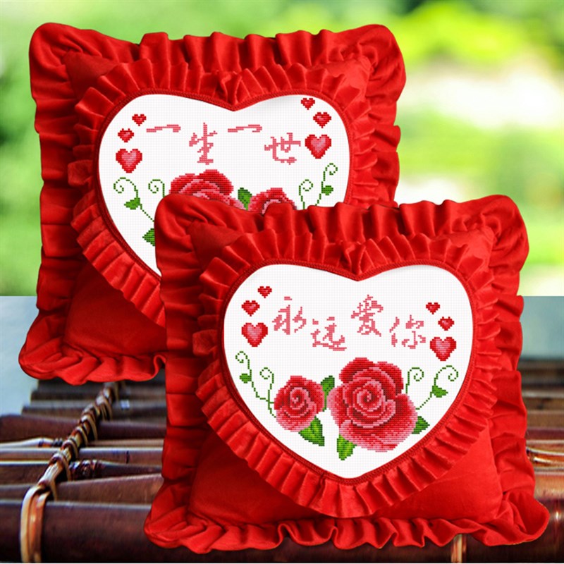 新款十字绣抱枕自己绣花字汽车靠枕客厅沙发座椅创意靠垫枕头套