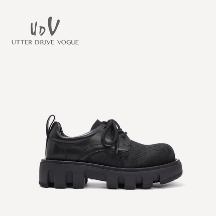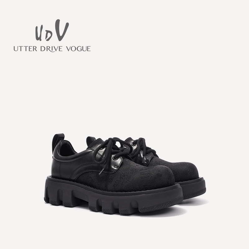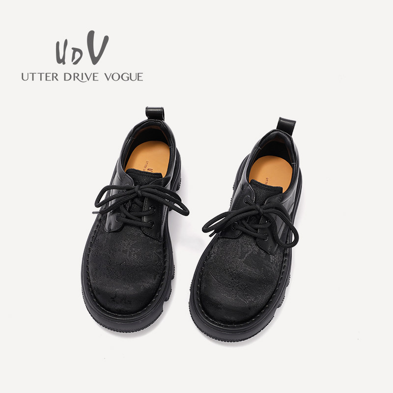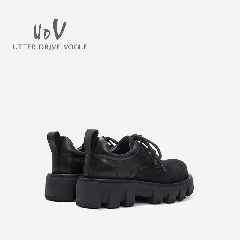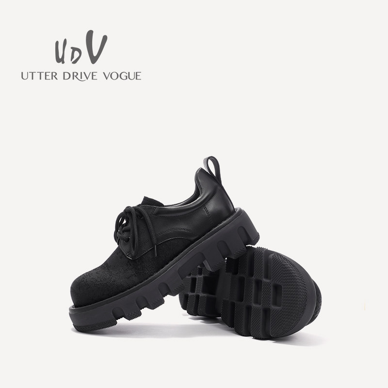 UDV2024秋冬新品真皮拼接时装深口单鞋方圆头平底英伦风女鞋