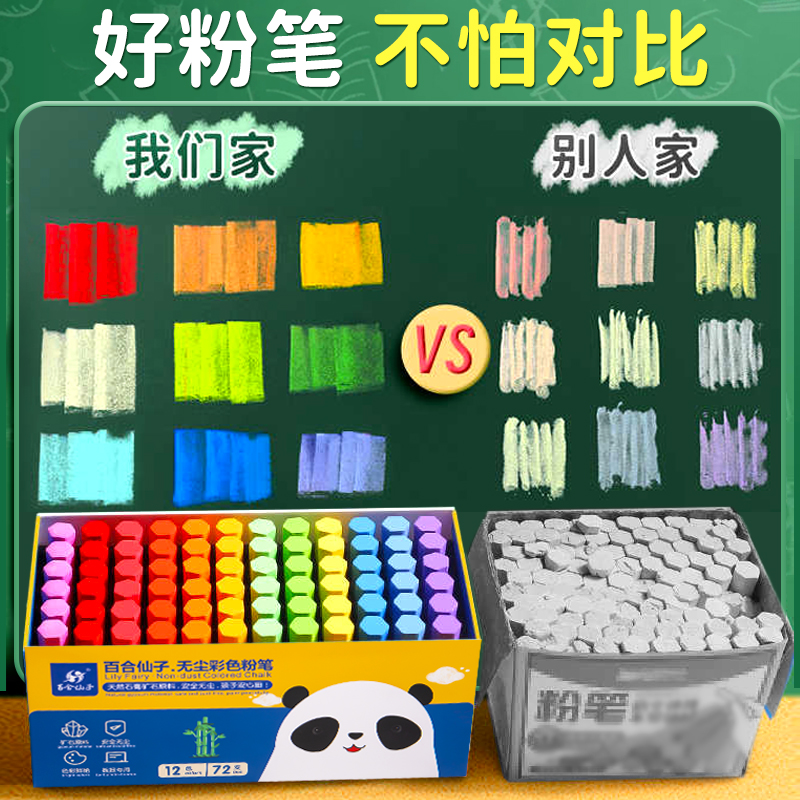 彩色粉笔多色无尘无毒画板黑板报儿童教师专用鲜艳教学黑板老师白色粉笔六角白粉笔套可擦教学多色幼儿园家用