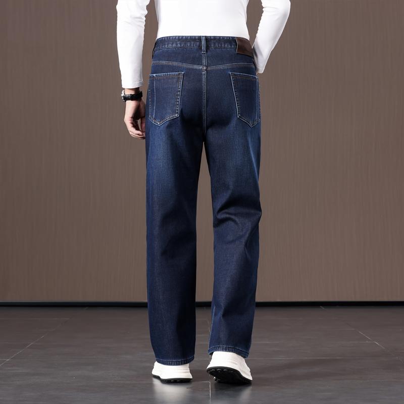 (保暖奥粒绒)冬季中老年男士加绒加厚牛仔裤宽松阔腿加肥加大长裤