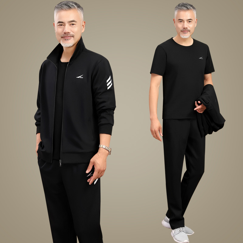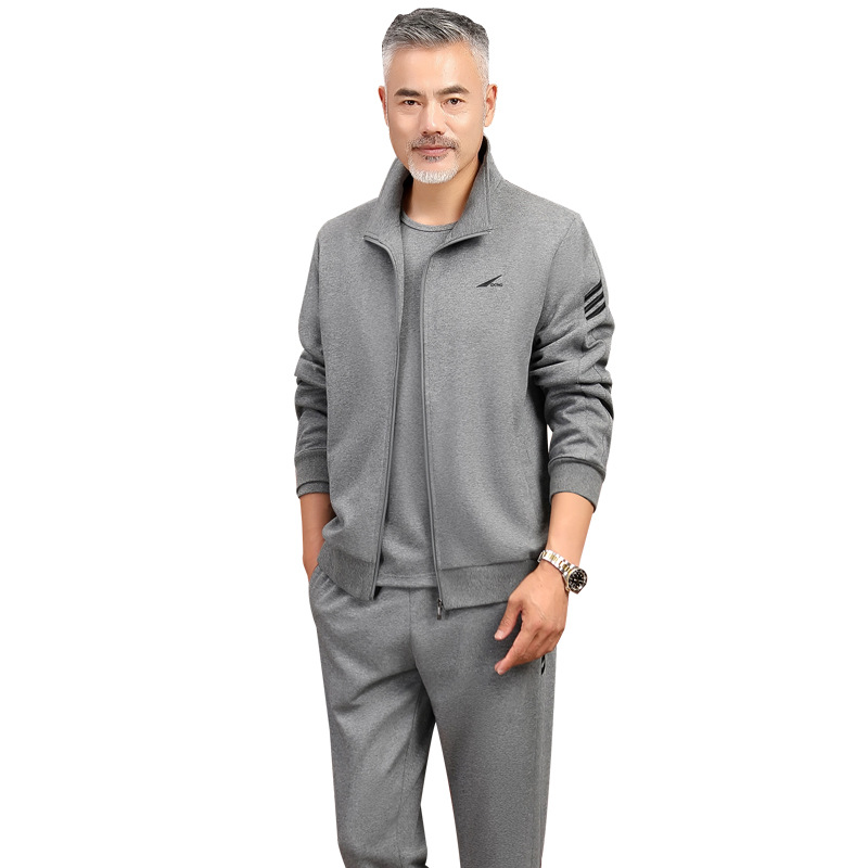 中老年运动套装男士春秋款休闲装爸爸外套中年衣服秋季大码三件套