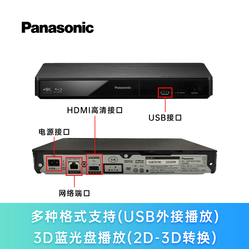 【官方旗舰】松下BDT270 4K播放机dvd影碟机3D高清蓝光DVD播放器