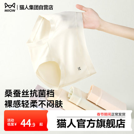 猫人内裤女桑蚕丝抗菌裆无痕透气