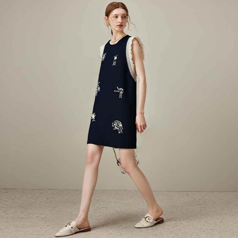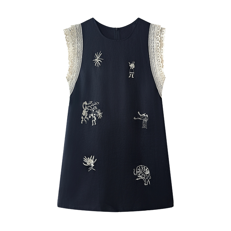 dfvc亚麻创意刺绣飞飞袖背心裙