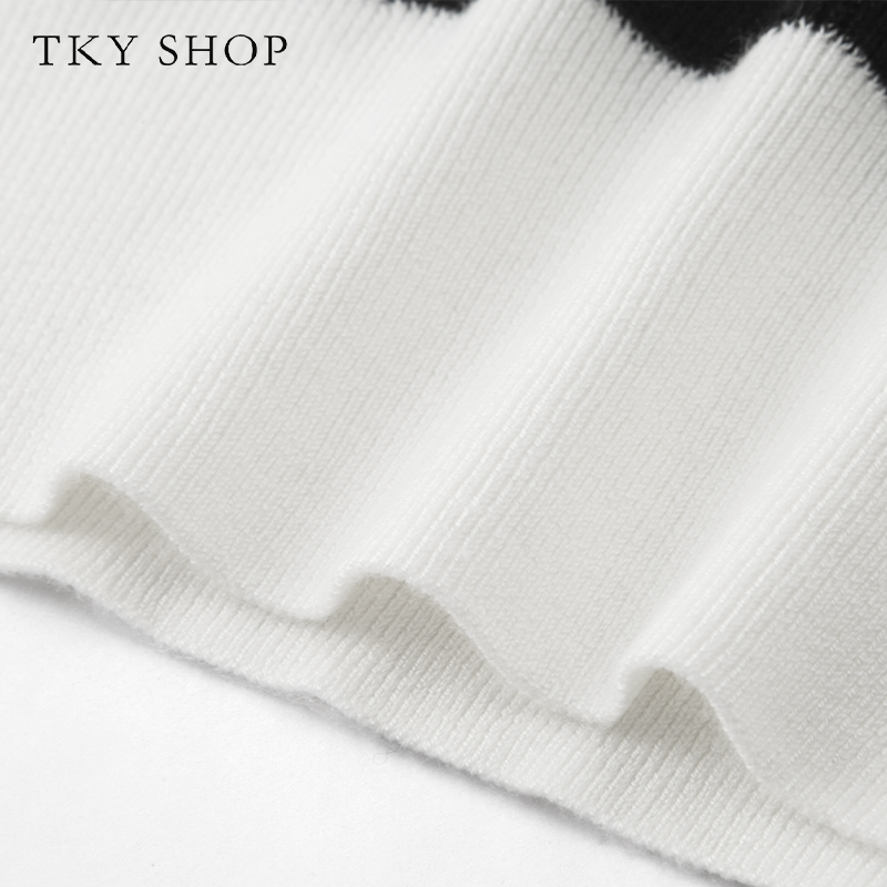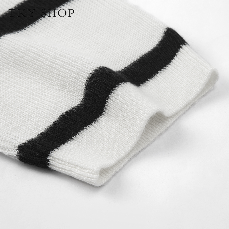 TKYSHOP黑白条纹圆领针织衫