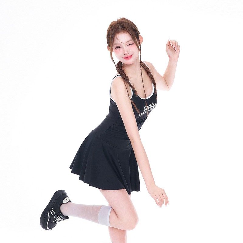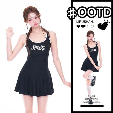 少女泳衣女夏高级感连体裙式黑色纯欲学生甜妹可爱日系女孩游泳衣