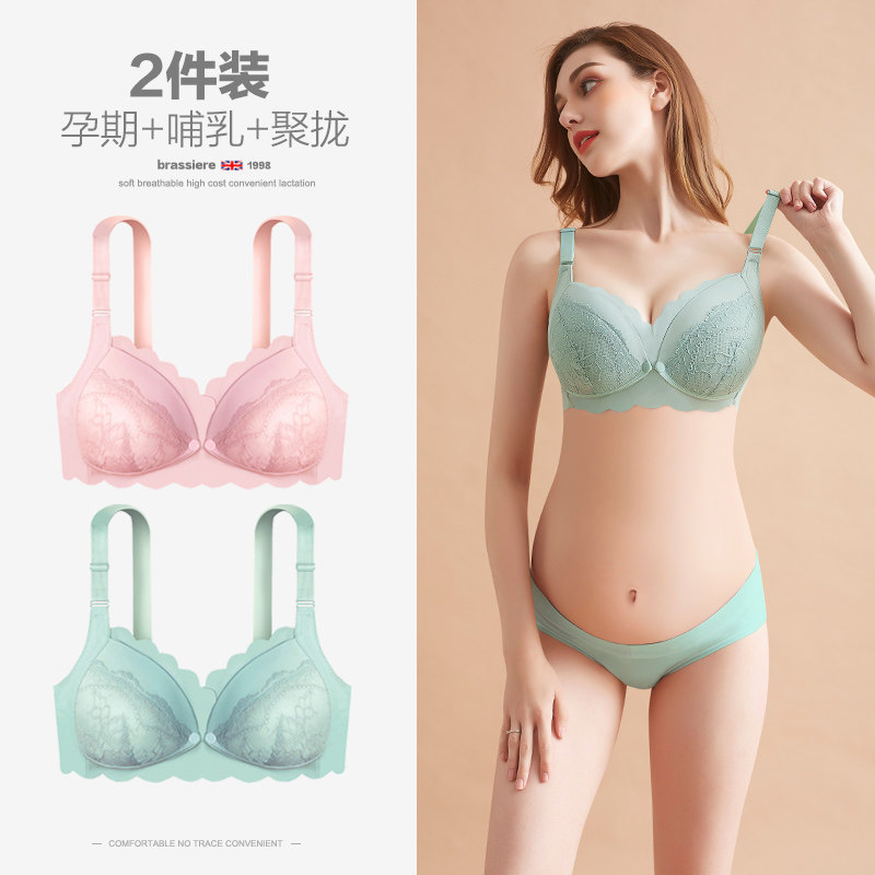 孕妇内衣怀孕期哺乳内衣聚拢v防下垂产后前开扣夏季喂奶专用文胸