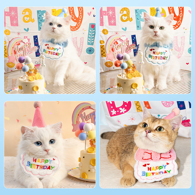 猫咪生日装扮宠物口水巾围兜小狗狗过生日蛋糕围脖装饰品围嘴帽子