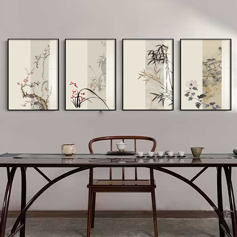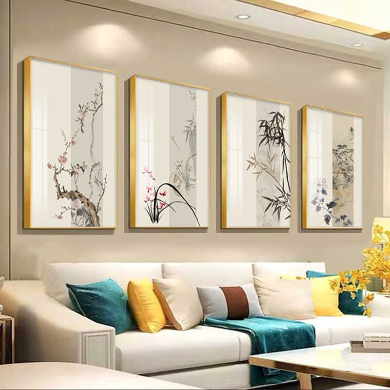 新中式客厅沙发装饰画梅兰竹菊挂画中国风书房茶室办公室壁画有框