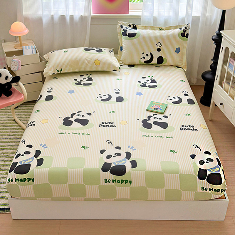 卡通儿童床笠单件纯棉全棉0.9m单双人可爱熊猫男女孩床垫保护套罩