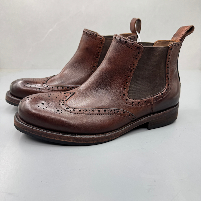 稀缺高档水洗牛皮外贸单男短靴雕花马丁靴复古固特异皮底切尔西靴