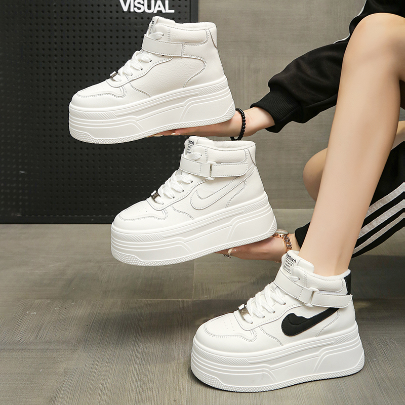 港风高帮小白鞋女款2025秋冬新款爆款厚底百搭休闲运动系带板鞋女